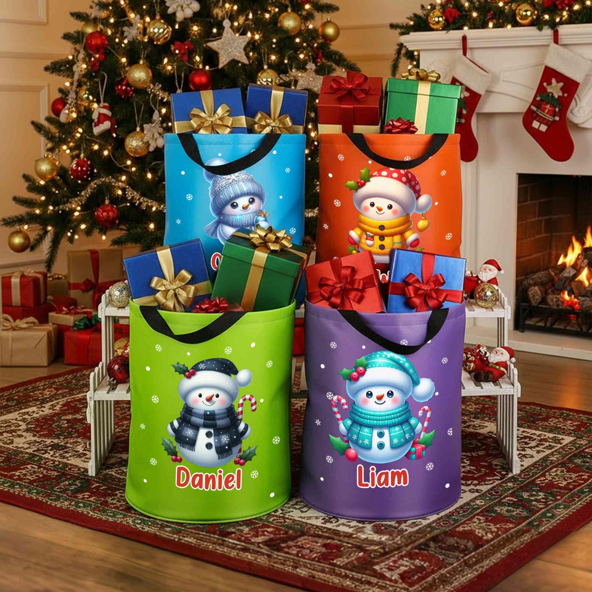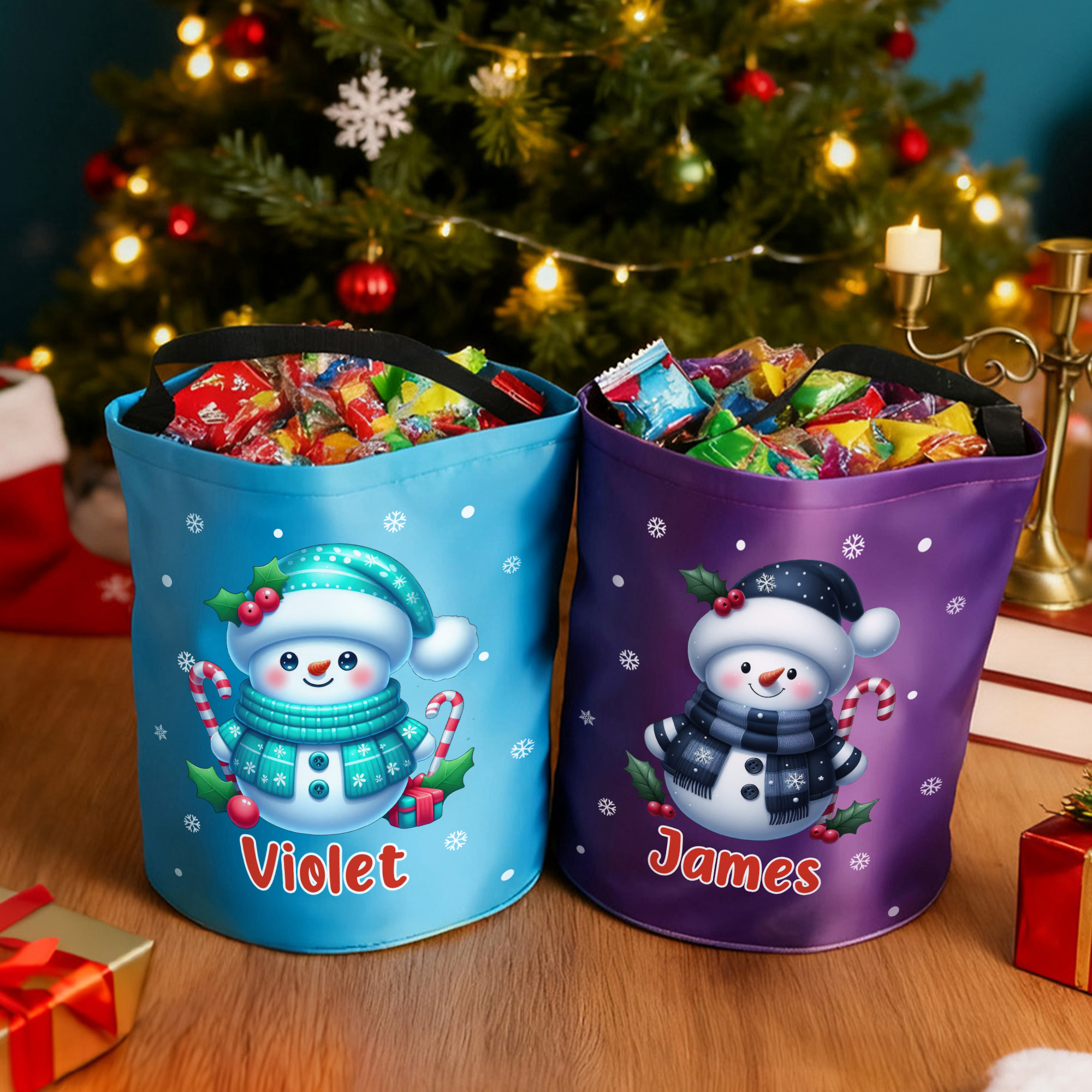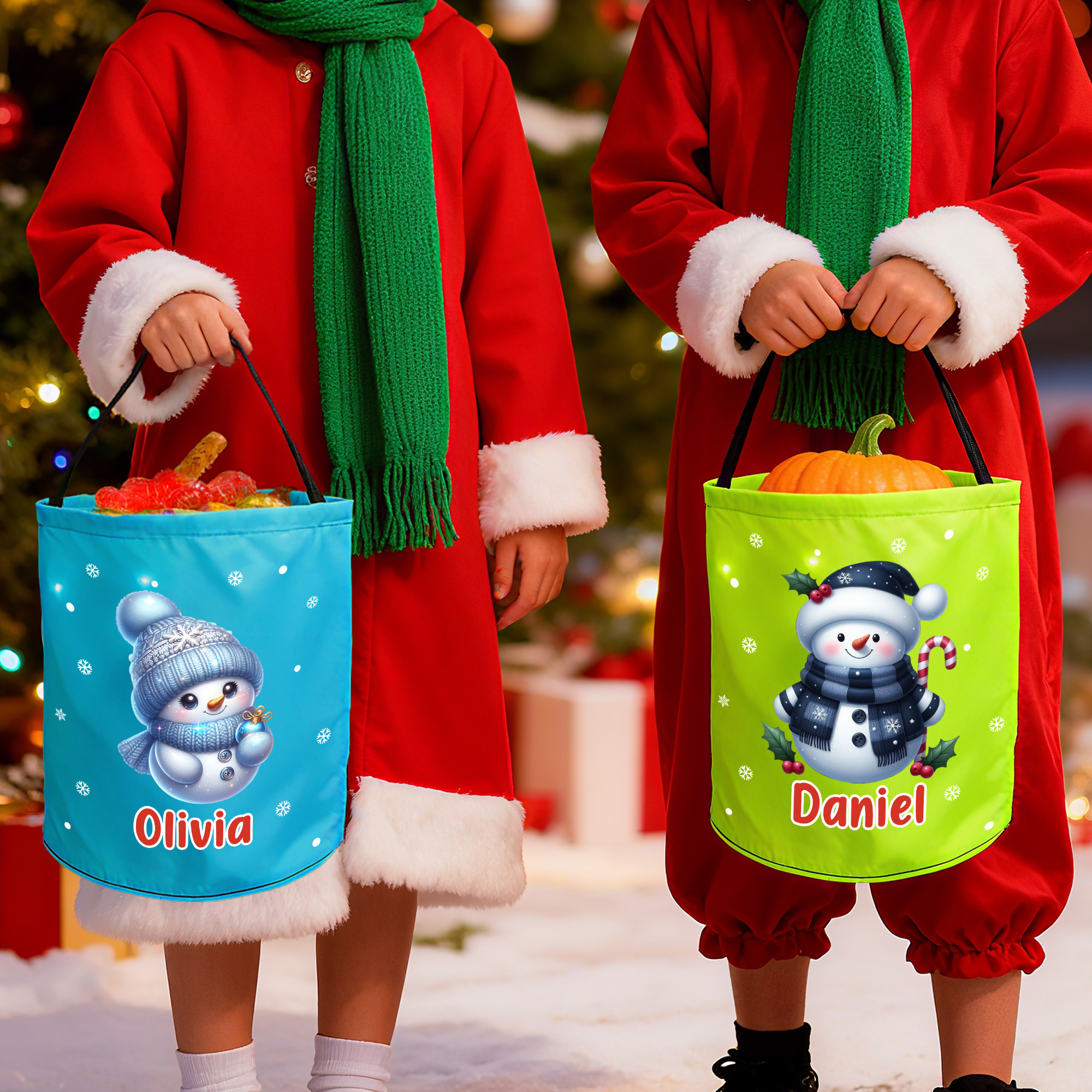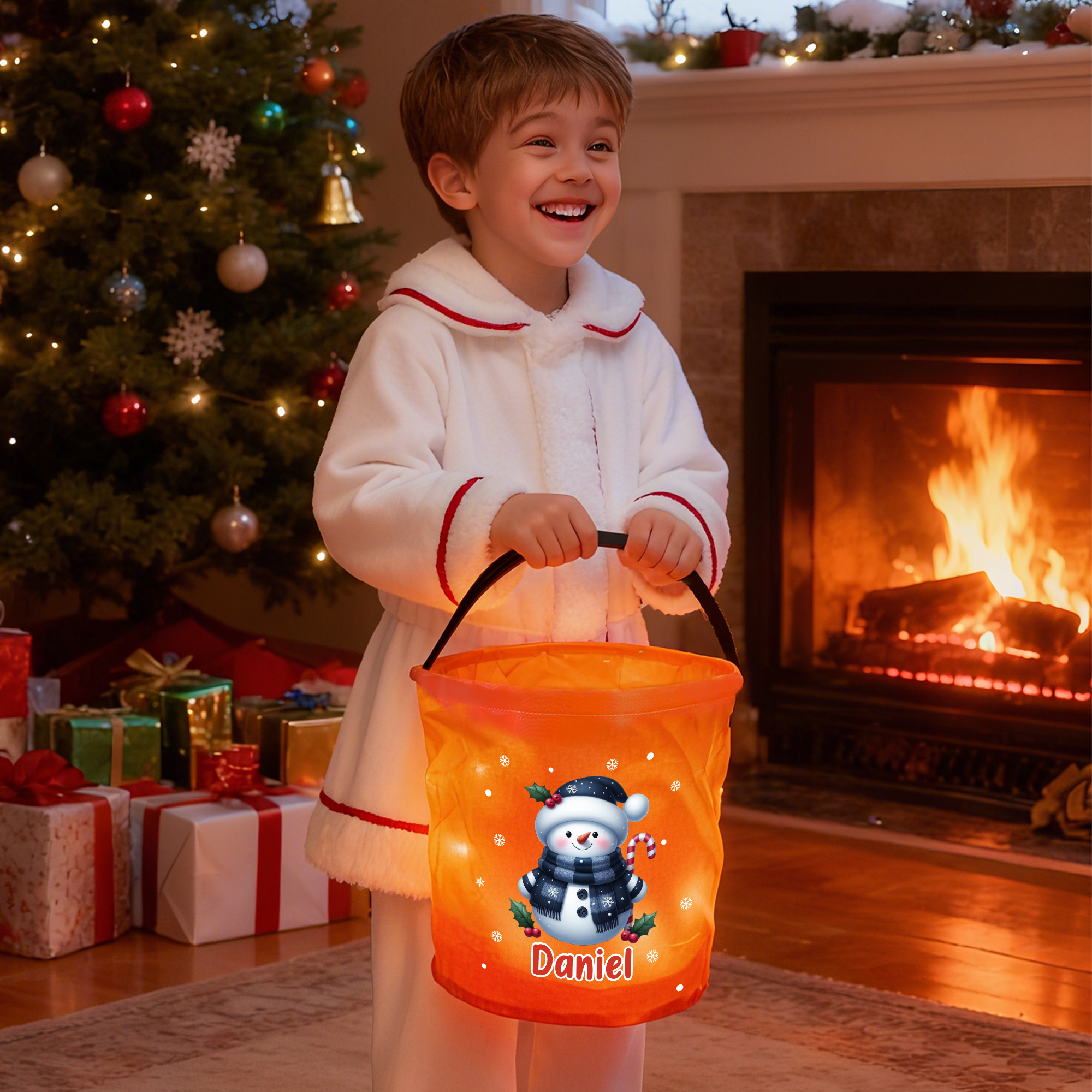 Personalized Name Cartoon Snowman LED Light Christmas Bag, Light-Up Candy Basket Treat Bucket, Holiday Party Favor, Christmas Gift for Kids/Boys/Girls